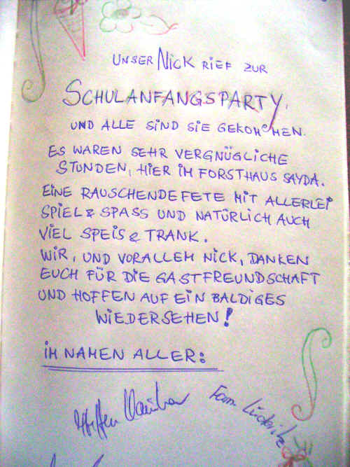 Unser Nick rief zur Schulanfangsparty und alle sind Sie gekommen.