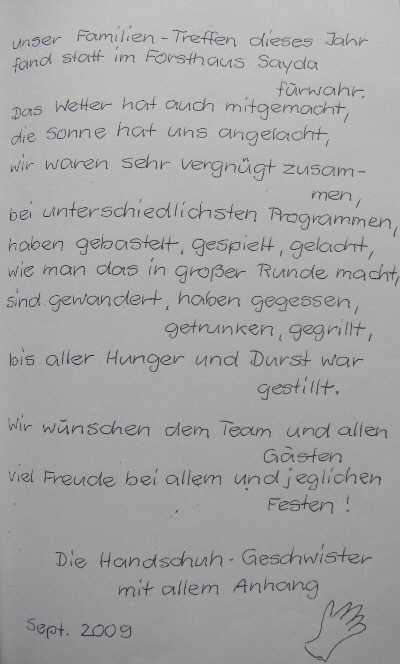 Unser Familien-Treffen dieses Jahr fand statt im Forsthaus Sayda fürwahr.