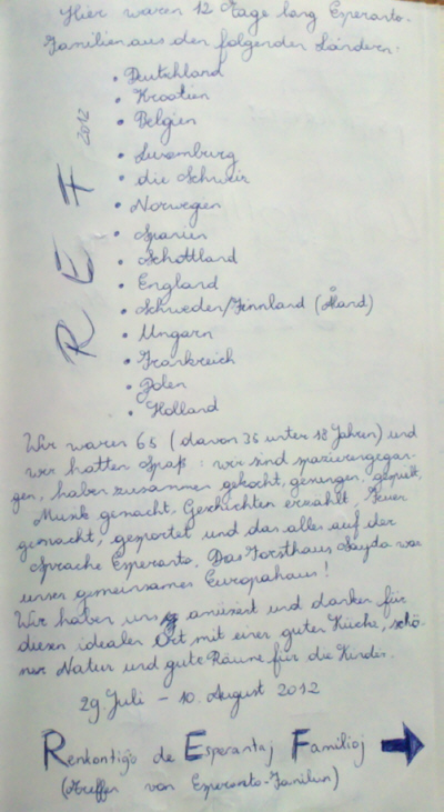 Hier waren 12 Tage lang Esperanto-Familien aus den folgenden Ländern: