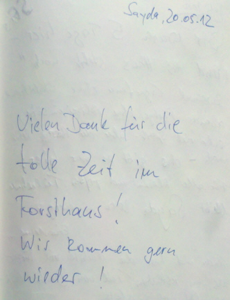 Vielen Dank für die tolle Zeit im Forsthaus!