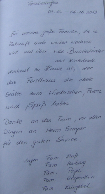 Für unsere große Familie, die in Zukunft noch weiter wachsen wird und über viele Bundesländer nebst Niederlande verstreut zu Hause ist, war das Forsthaus die ideale Stätte zum Wiedersehen, Feiern und Spaß haben.