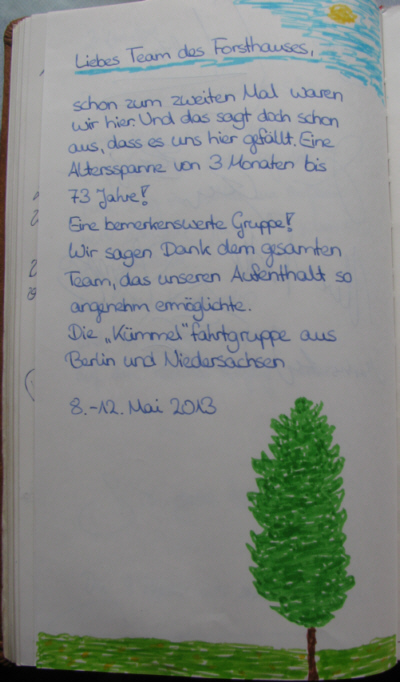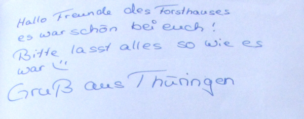 Hallo Freunde des Forsthauses, es war schön bei Euch !