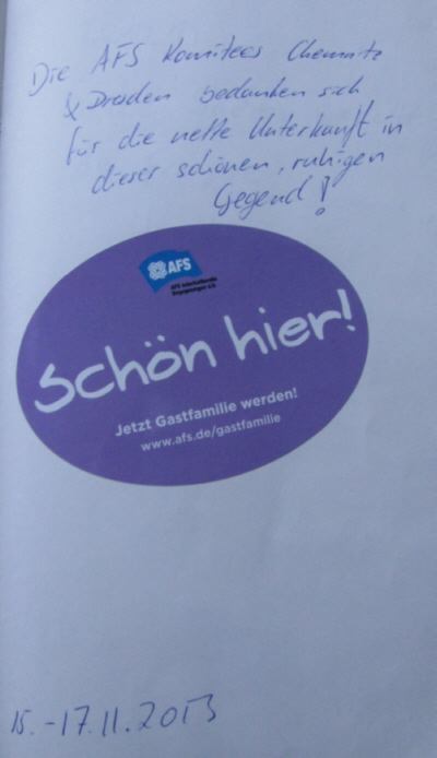 Die AFS-Komitees Chemnitz & Dresden bedanken sich für die nette Unterkunft in dieser schönen, ruhigen Gegend !