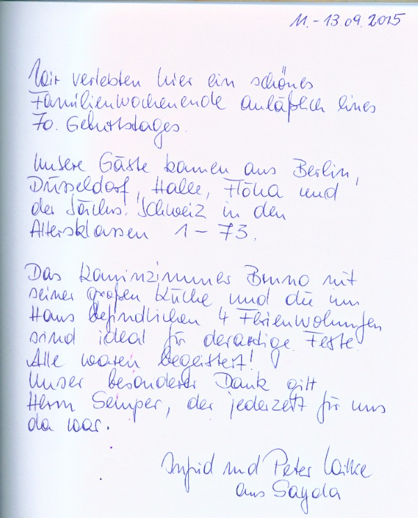 Wir verlebten hier ein schöne Familienwochenende anläßlich eines 70. Geburtstages.