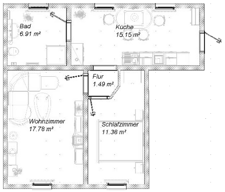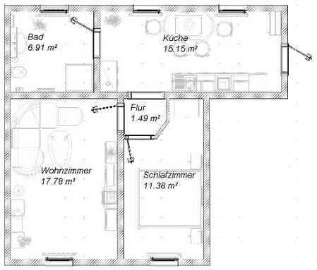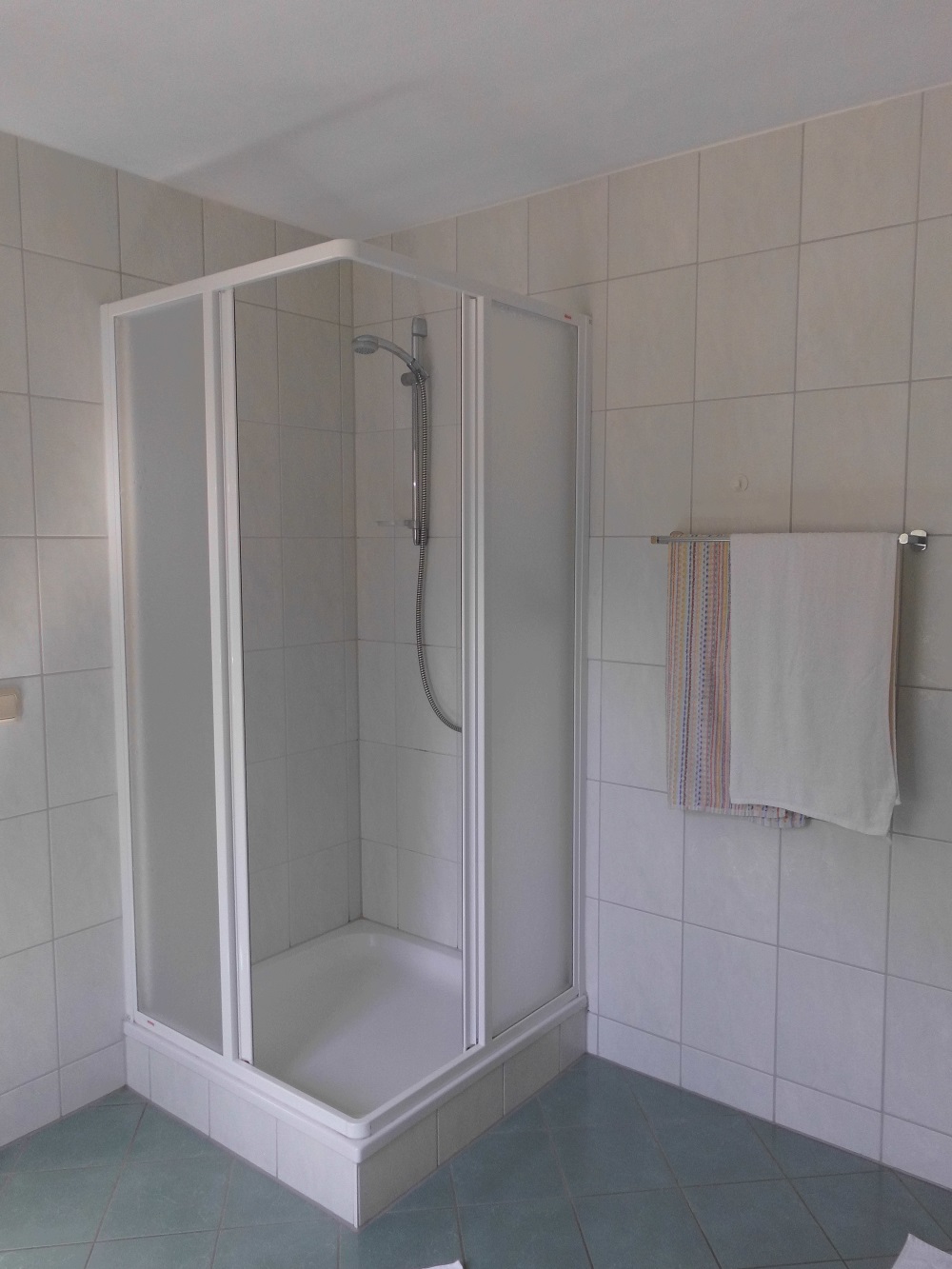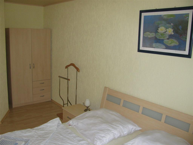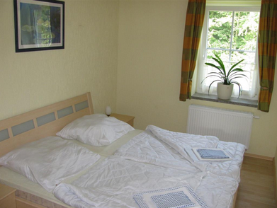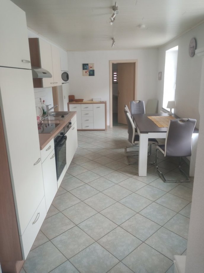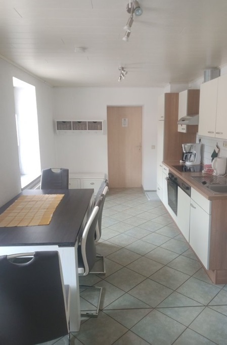 Die größere Ferienwohnung "Mortelgrund" im 1. Obergeschoss ist ca. 55 qm groß und haben eine große Küche mit Esstisch und kompletter Küchenzeile/Einbauküche, ein Bad mit DU/WC, einem Schlafzimmer mit Doppelbett sowie einem großem Wohnzimmer / TV und Radio mit Schlafsofa.