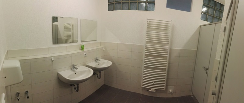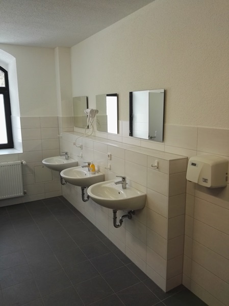 Die Sanitäranlagen im 1. und 2. Obergeschoss des Forsthauses wurden 2017 und 2018 komplett modernisiert. Die Duschen sind separat abschließbar und verfügen über einen Vorraum für die Bekleidung.