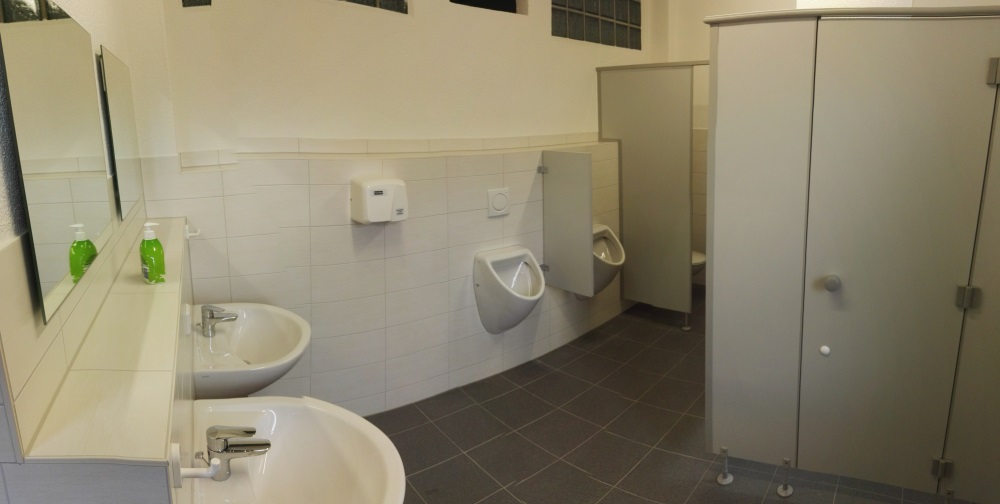Herren: 2 WC, 2 Pissoirs, 2 Waschbecken